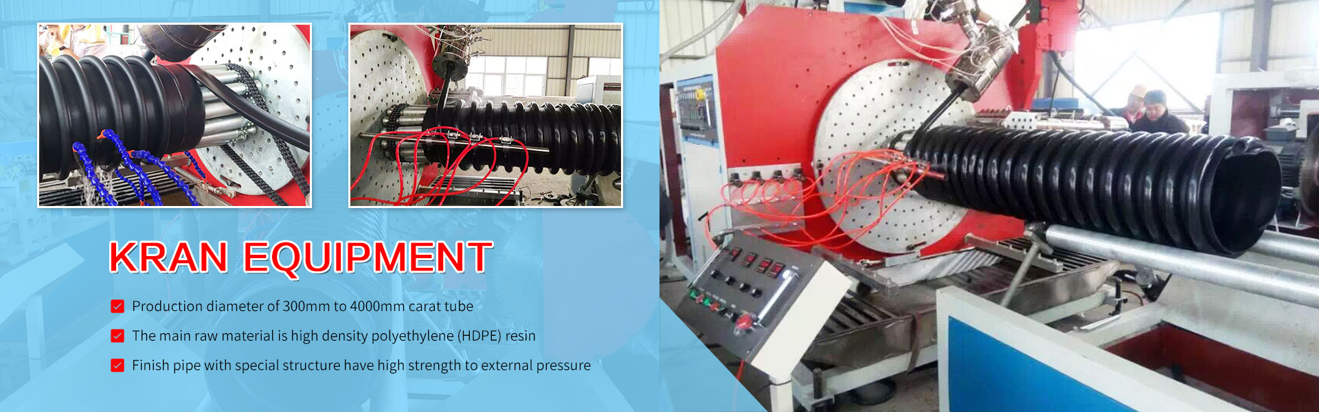 Inner rib reinforced winding pipe Machine Hollow wall winding pipe Machine Krah Machien Double plastic composite pipe Machine Plastic pipe Machine Plastic Sheet Machine PVC profile Machine Insulation pipe Machine PET PP Packing belt production line Plastic crusher Plastic extruder