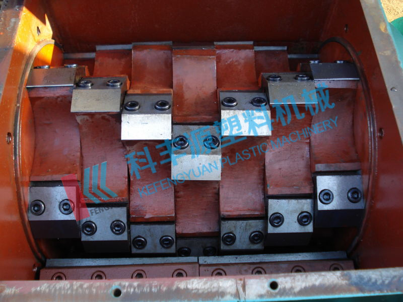 塑料破碎機(jī)通過電動(dòng)機(jī)帶動(dòng)動(dòng)刀刀架做高速旋轉(zhuǎn),在動(dòng)刀高速轉(zhuǎn)動(dòng)的過程中與定刀形成相對運(yùn)動(dòng)的剪切趨勢,利用動(dòng)刀與定刀之間形成的剪切從而對大塊塑料進(jìn)行破碎、粉碎,破碎后形成10-20mm大小的塑料片,通過篩網(wǎng)對塑料顆粒大小進(jìn)行過濾輸出。